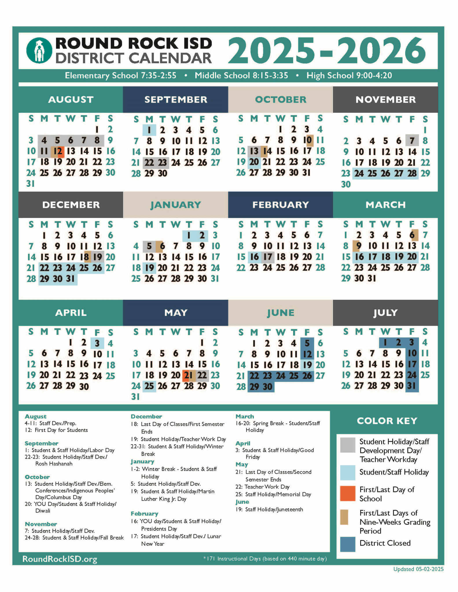 Find important dates like the first day of school, school holidays, etc. District Calendar